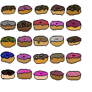 Pixel art pack of 25 donuts.